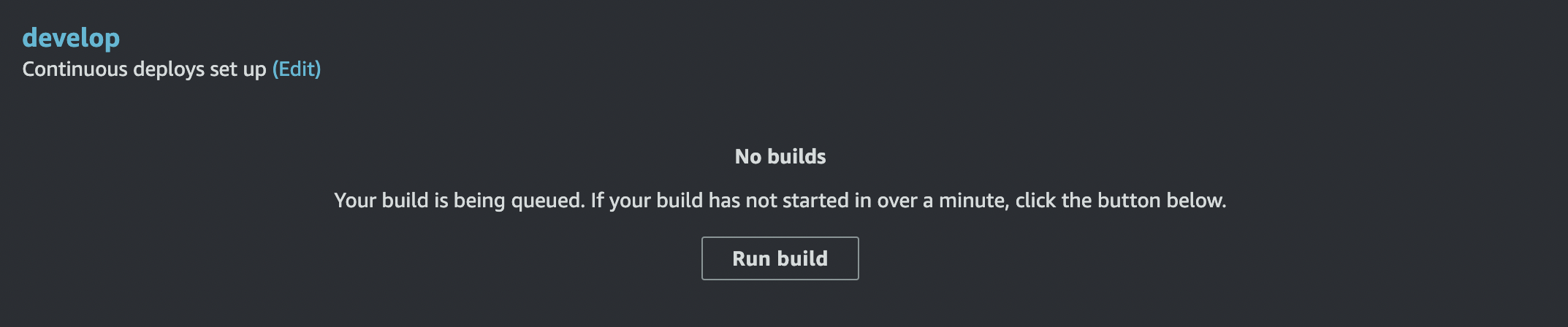 Click on Run Build after provisioning. You’ll probably have to do this once for all the branches you add/commit. This will trigger a build and deploy.